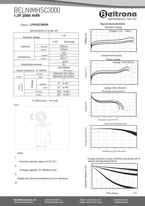 Akumulator specjalny Beltrona BELNIMHSC3000HBG, NiMH, 3000 mAh, 1.2 V, 1 szt.