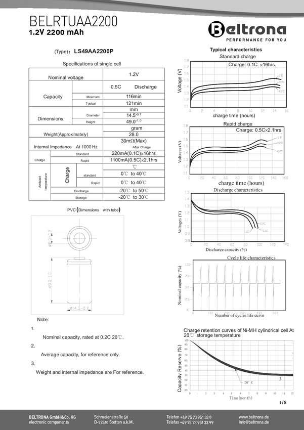 Akumulator specjalny Beltrona BELRTUAAZ, NiMH, 2200 mAh, 1.2 V, 1 szt.