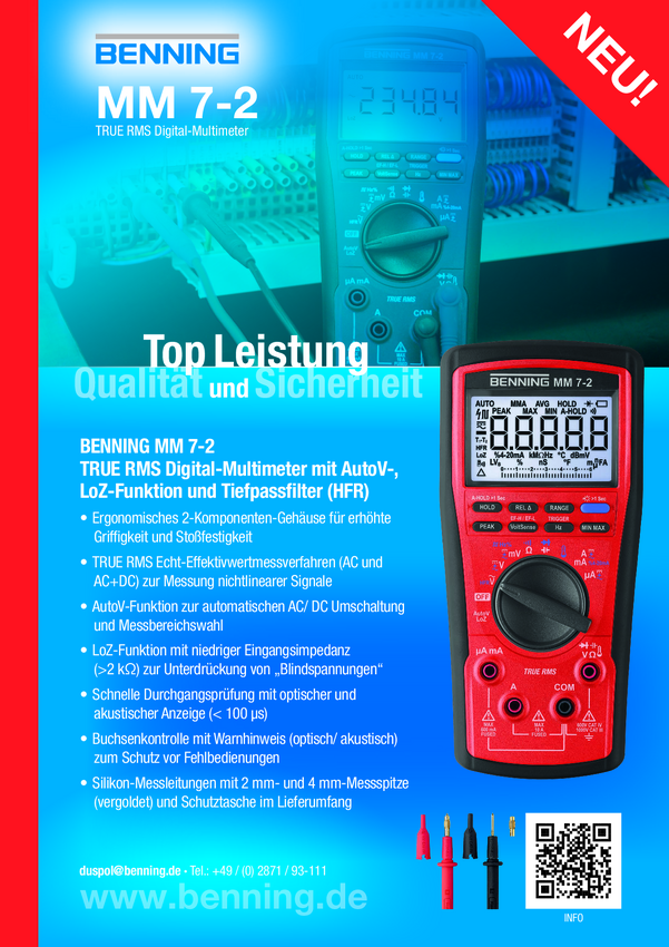 Multimetr cyfrowy Benning MM 7-2 044690-DAkkS, CAT III 1000 V, CAT IV 600 V, AC/DC, kalibracja DAkkS