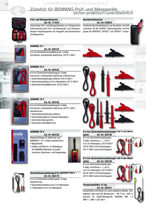 Przewody pomiarowe Benning TA 2 044125, 1.00 m, czerwony, czarny