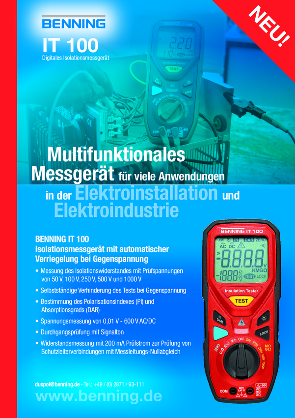 Miernik rezystancji izolacji Benning IT 100 Kalibracja (DAkkS)