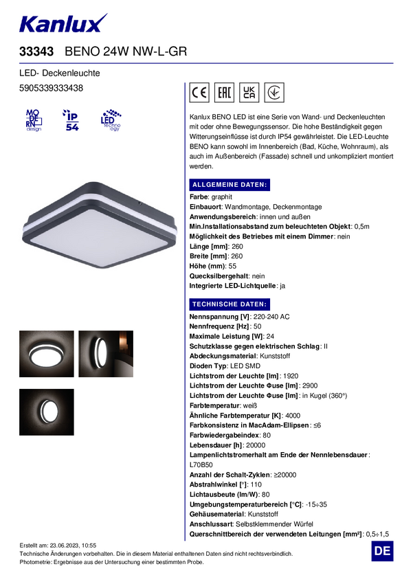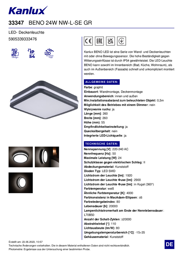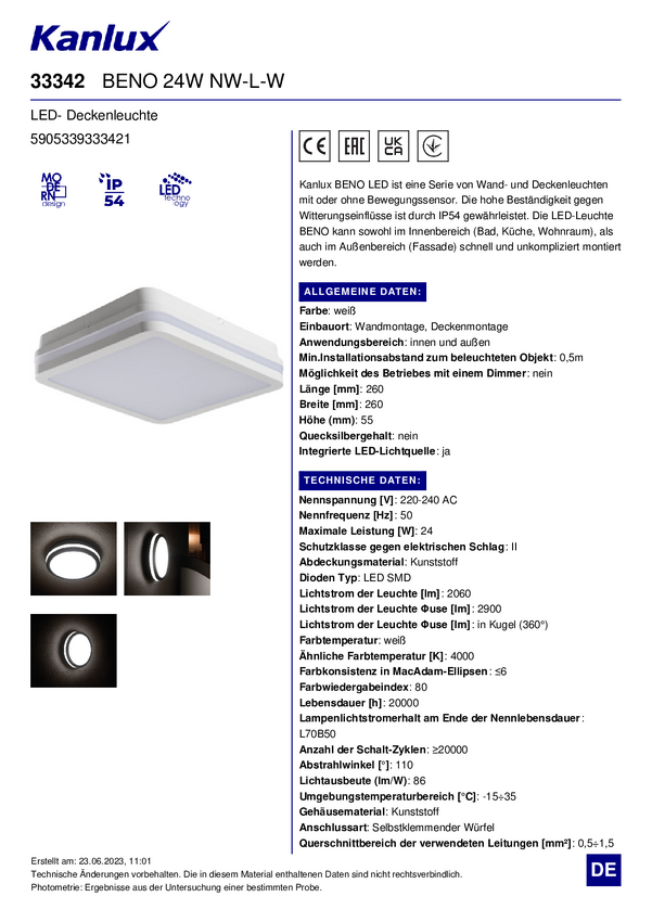 Lampa sufitowa LED, Lampa ścienna LED Kanlux BENO 33342 24 W 2060.00 lm biały