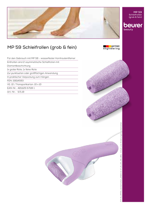 Zamienna końcówka ścierna Beurer MP 59 Schleifrollen Wet & Dry