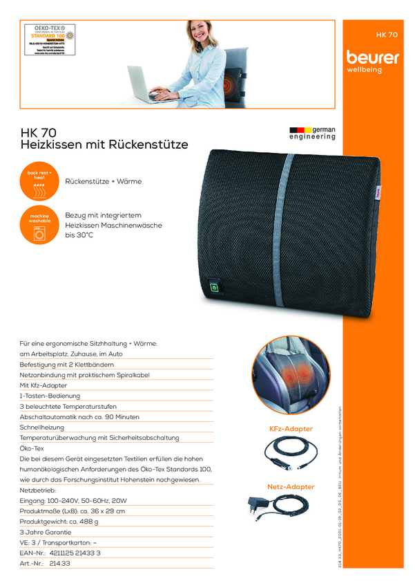 Poduszka elektryczna Beurer 21433 HK 70 Lordose 20 W