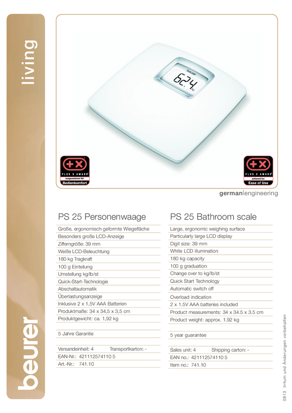 Beurer PS 25 Waga osobowa cyfrowy Zakres pomiaru maks.=180 kg biały