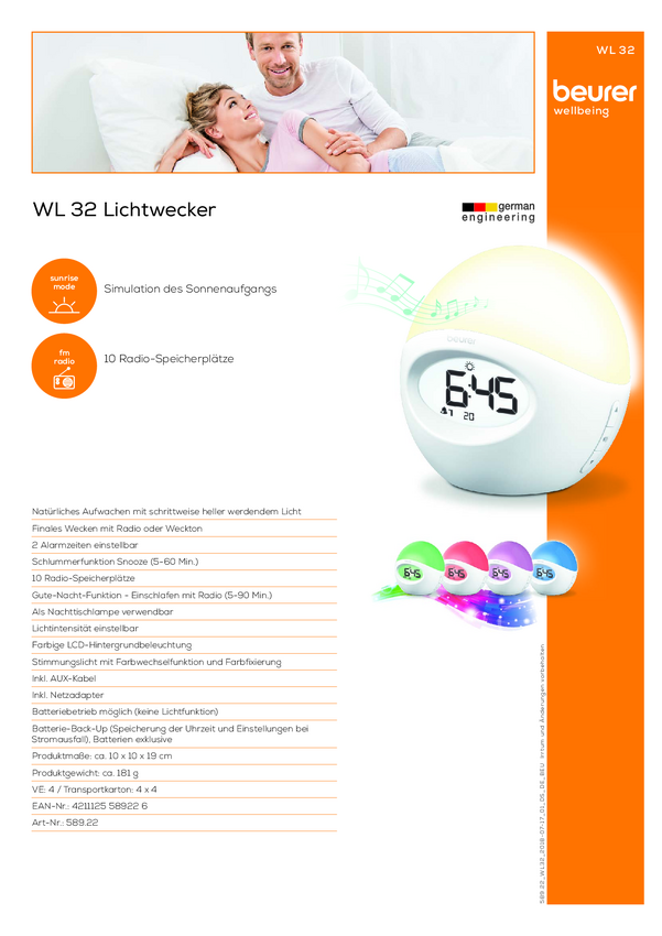 Budzik świetlny Beurer WL 32 58922, biały