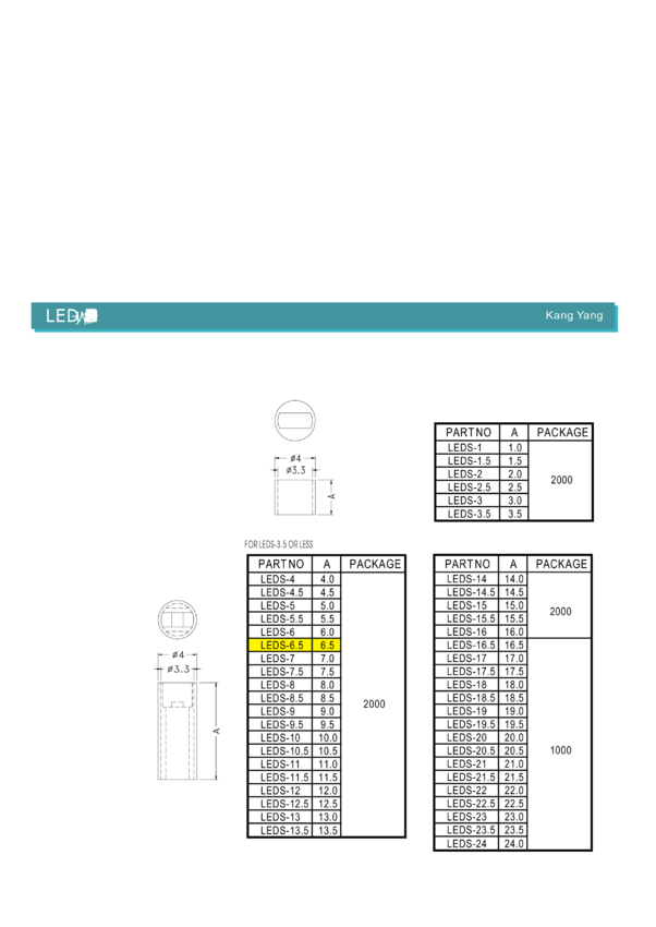 Podstawka pod diodę LED3, wysokość A=4.0mm, bezbarwna