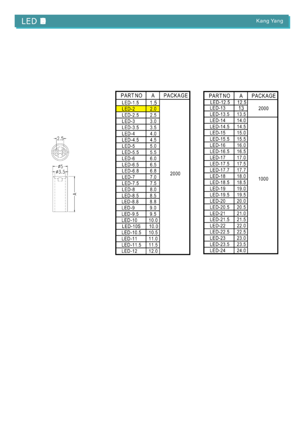 Podstawka pod diodę LED3, wysokość A=2.0mm, bezbarwna