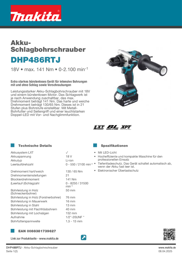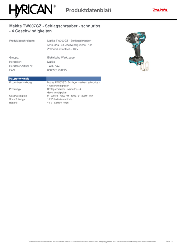 Wkrętarka udarowa akumulatorowa Makita S_0380_7626782 40 V bezszczotkowy