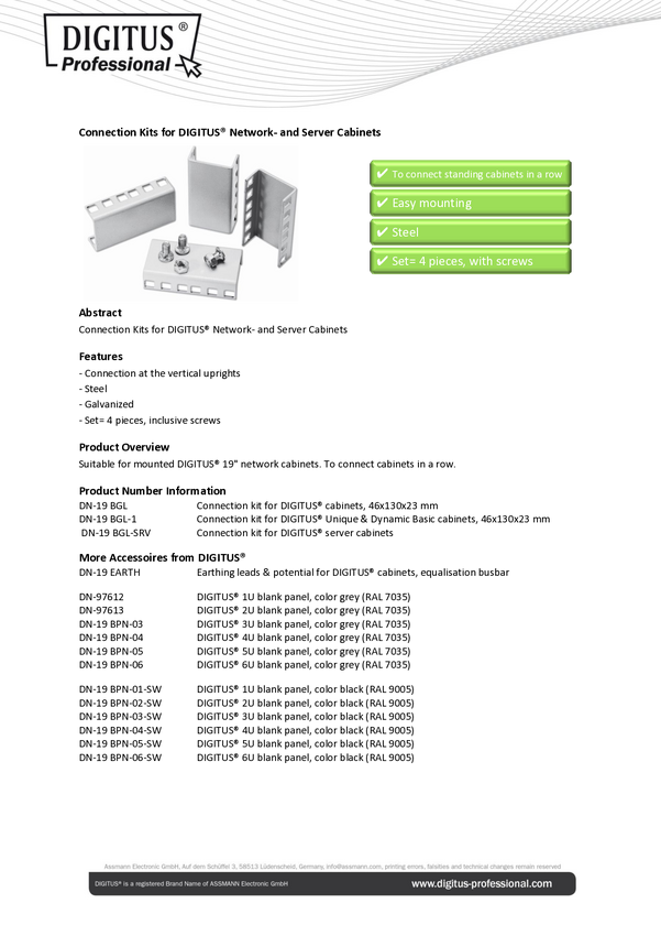 Akcesorium montażowe Digitus DN-19 BGL-1 DN-19 BGL-1 1 szt.