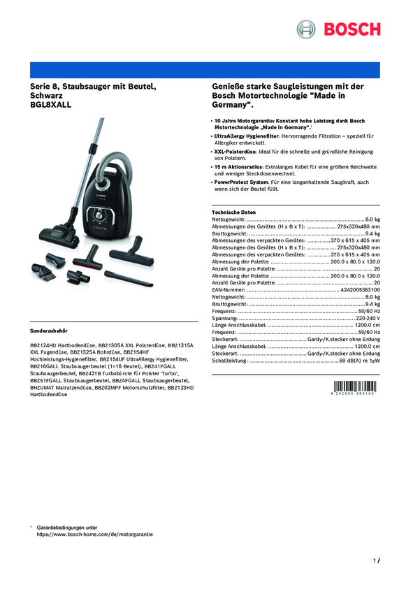 Bosch Staubsauger mit Beutel, Serie 8, schwarz Odkurzacz workowy