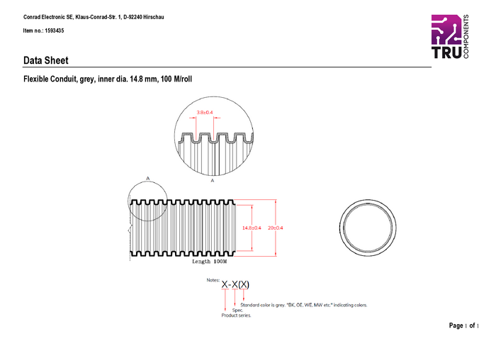 Wąż TRU COMPONENTS TC-BGR20P203 1593435, 20 mm, 1 m