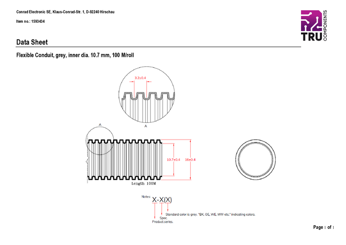 Wąż TRU COMPONENTS TC-BGR16P203 1593434, 16 mm, 1 m