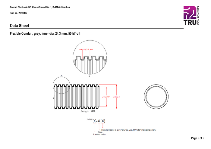 Wąż TRU COMPONENTS TC-BGR32P203 1593437, 32 mm, 1 m