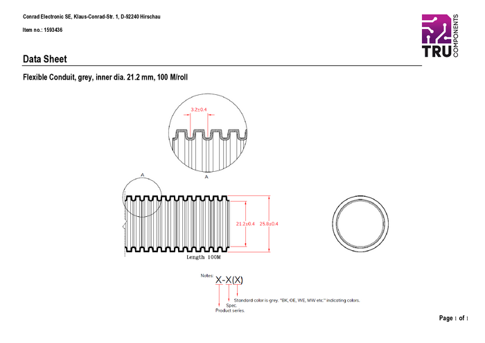 Wąż TRU COMPONENTS TC-BGR26P203 1593436, 25.80 mm, 1 m