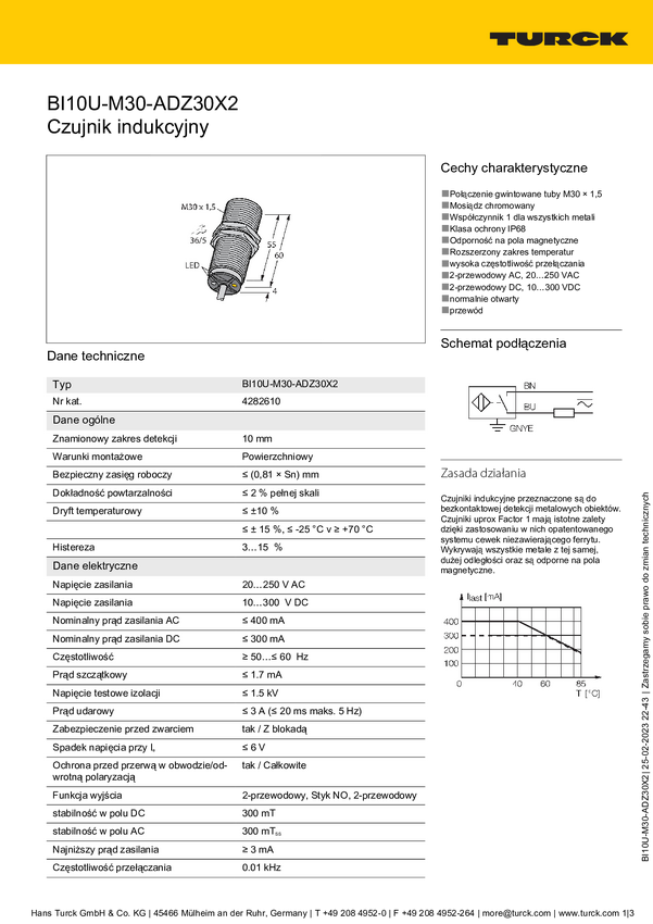 Czujnik indukcyjny Turck BI10U-M30-ADZ30X2, 20 - 250 V, 1 szt.