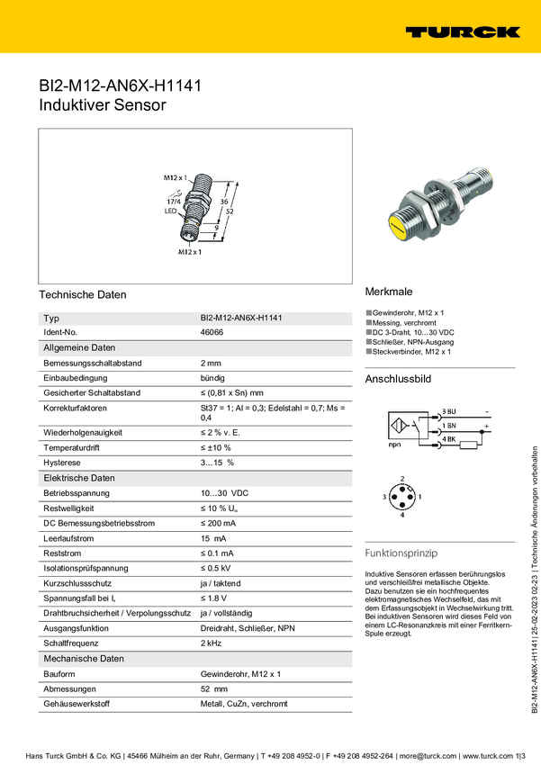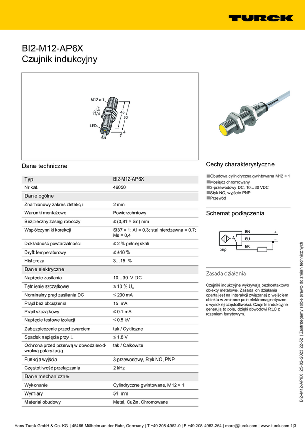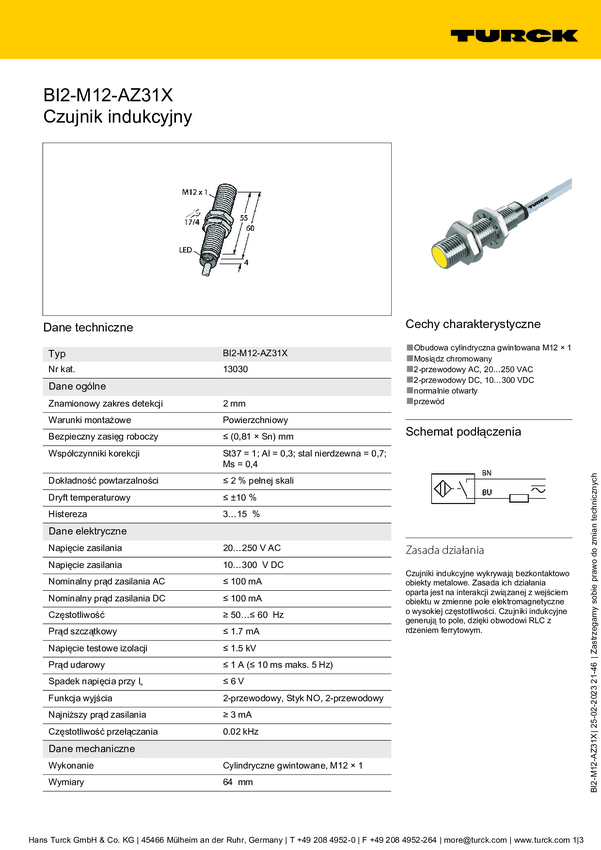 Czujnik indukcyjny Turck BI2-P12-Y1X, 1 szt.