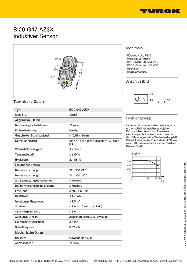Turck Czujnik indukcyjny podtynkowy BI20-G47-AZ3X