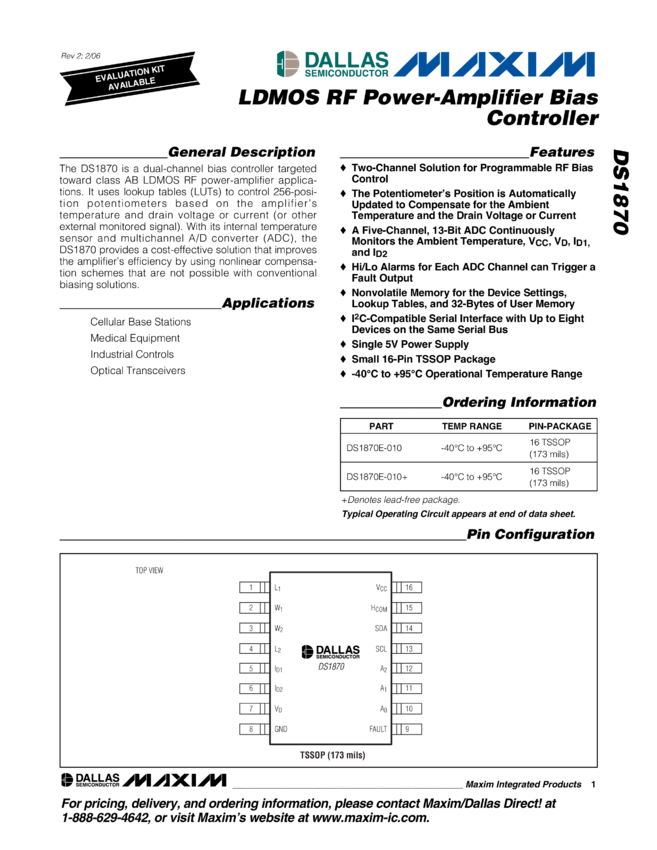 DS1870 LDMOS RF Power-Amplifier Bias Controller