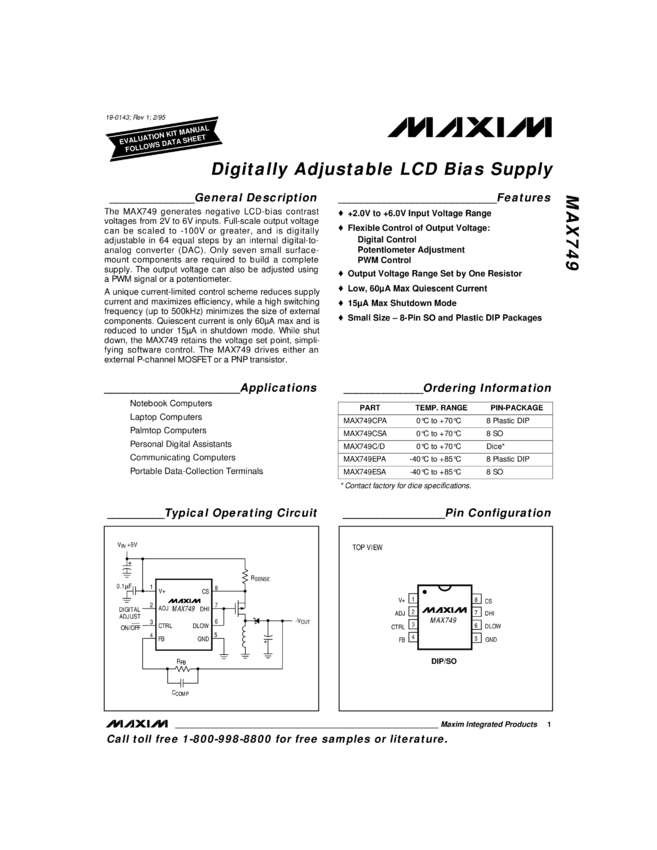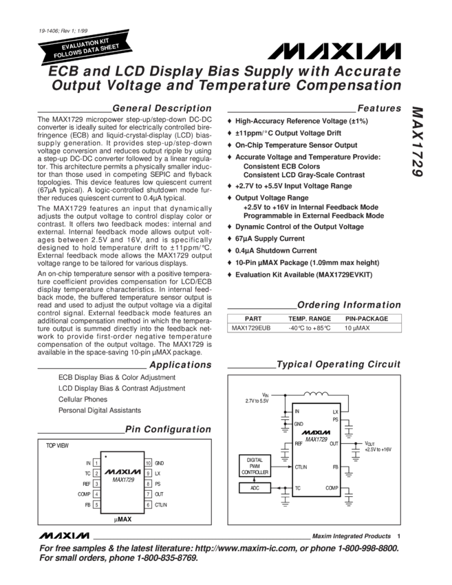 MAX1729 ECB and LCD Display Bias Supply with Accurate Output Voltage and Temperature Compensation