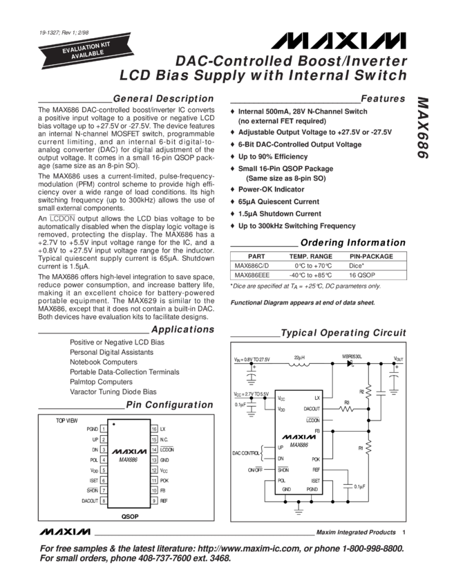 MAX686 DAC-Controlled Boost Inverter LCD Bias Supply with Internal Switch