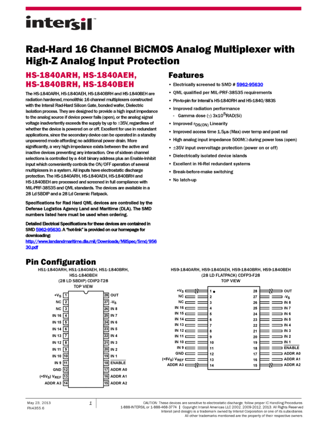 Radiation Hardened BiCMOS Dual SPDT Analog Switch