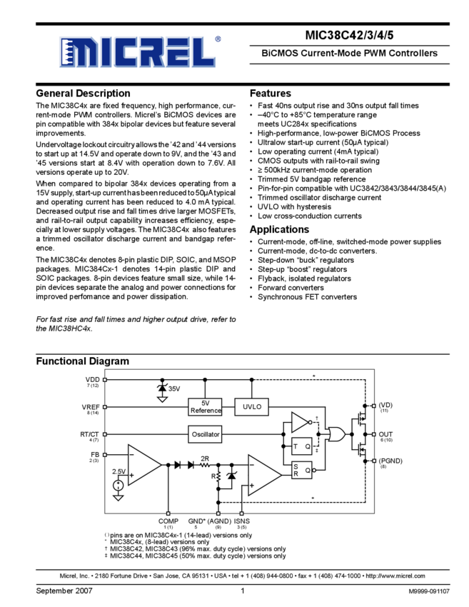 MIC38C42/3/4/5 - BiCMOS Current-Mode PWM Controllers