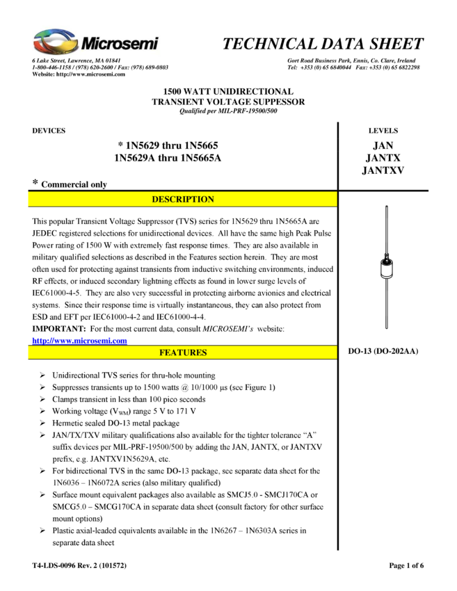 Standard Unidirectional and Bidirectional TVS