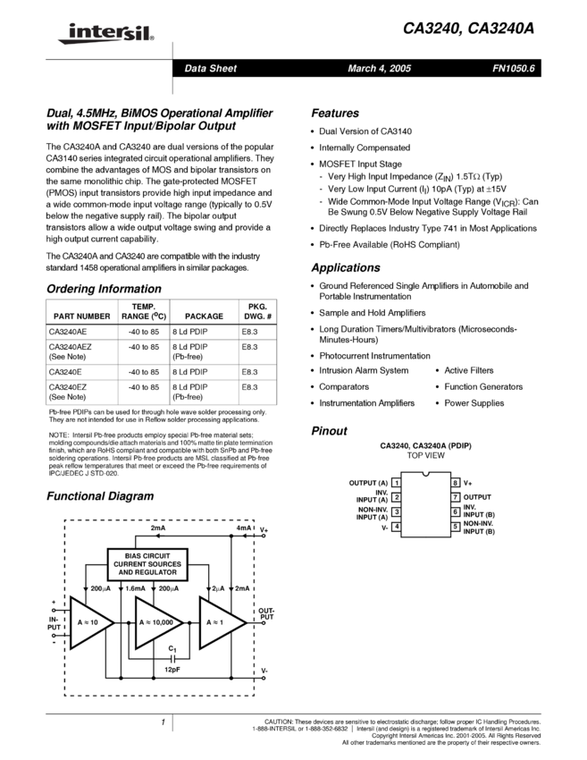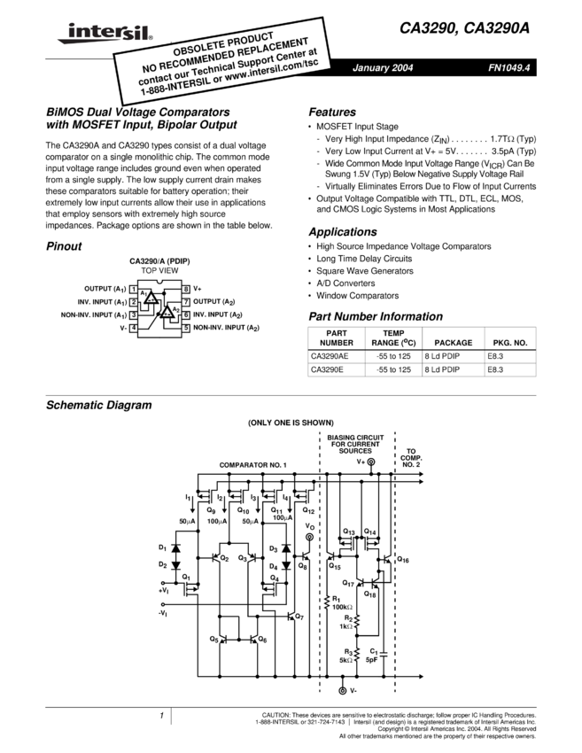 4MHz, BiMOS Operational Amplifier with MOSFET Input/CMOS Output