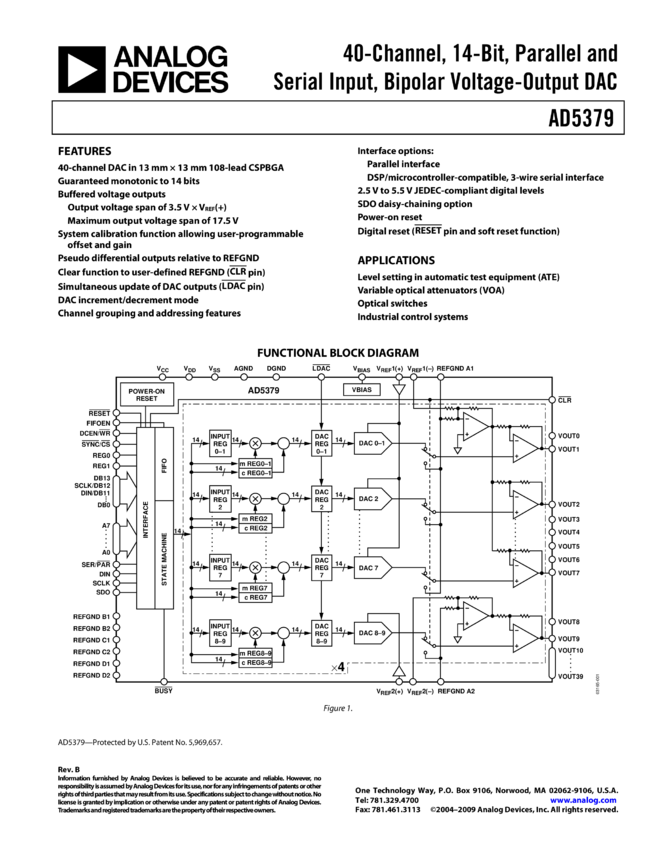 AD5379: 40-Channel, 14-Bit, Parallel and Serial Input, Bipolar Voltage-Output DAC