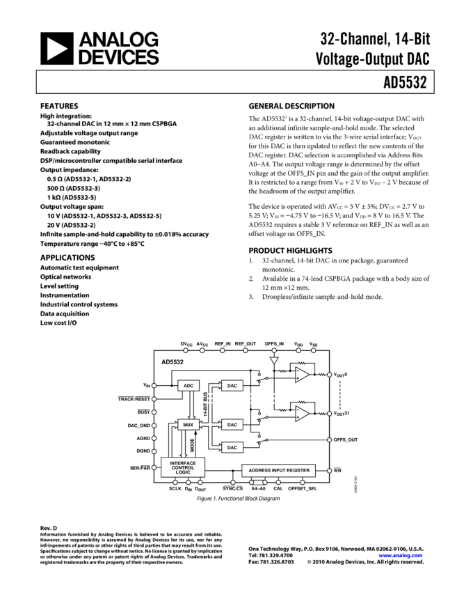 AD5532: 32-Channel 14-Bit Bipolar Voltage-Output DAC