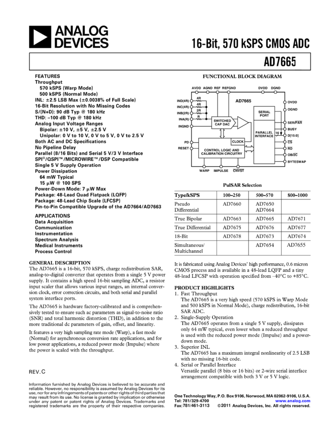 AD7665: 16-Bit 570 kSPS Bipolar PulSAR® ADC