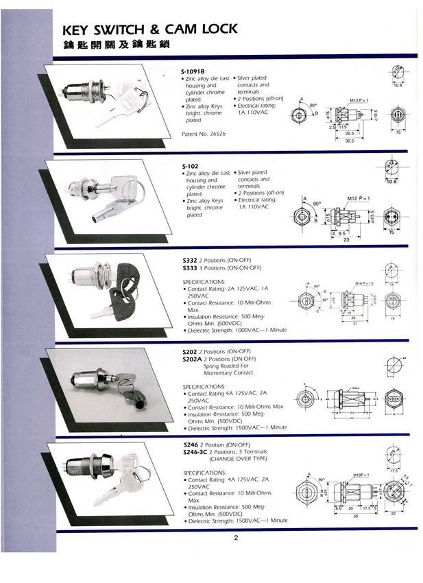 Przełącznik; stacyjka; S102-2; OFF-ON; 1 tor; 90*; 2 pozycje; bistabilny; do lutowania; 1A; 110V AC; 12mm; 20mm; HIGHLY; RoHS