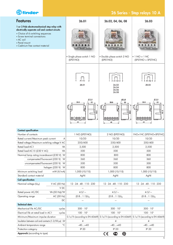 Przekaźnik; instalacyjny; bistabilny; NC + NO; 12V AC; 10A; 26.03.8.012.0000; FINDER; RoHS