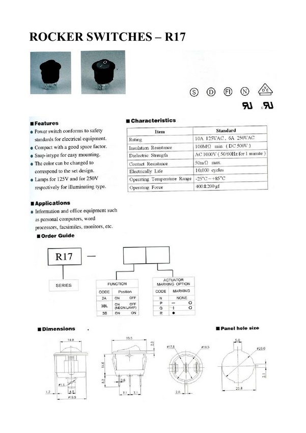 Przełącznik; ROCKER; klawiszowy; R17-3BQ; ON-ON; 1 tor; czarny; bistabilny; okrągły; 6A; 250V AC; 20mm; konektor 4,8x0,8mm; Highly; RoHS