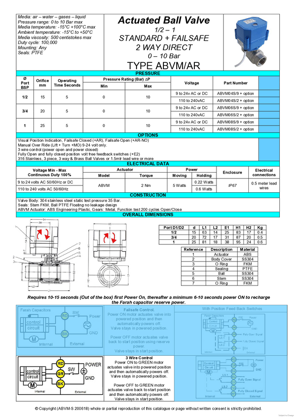 ICH ABVM06S/2 Zawór kulowy bistabilny 0 do 10 bar