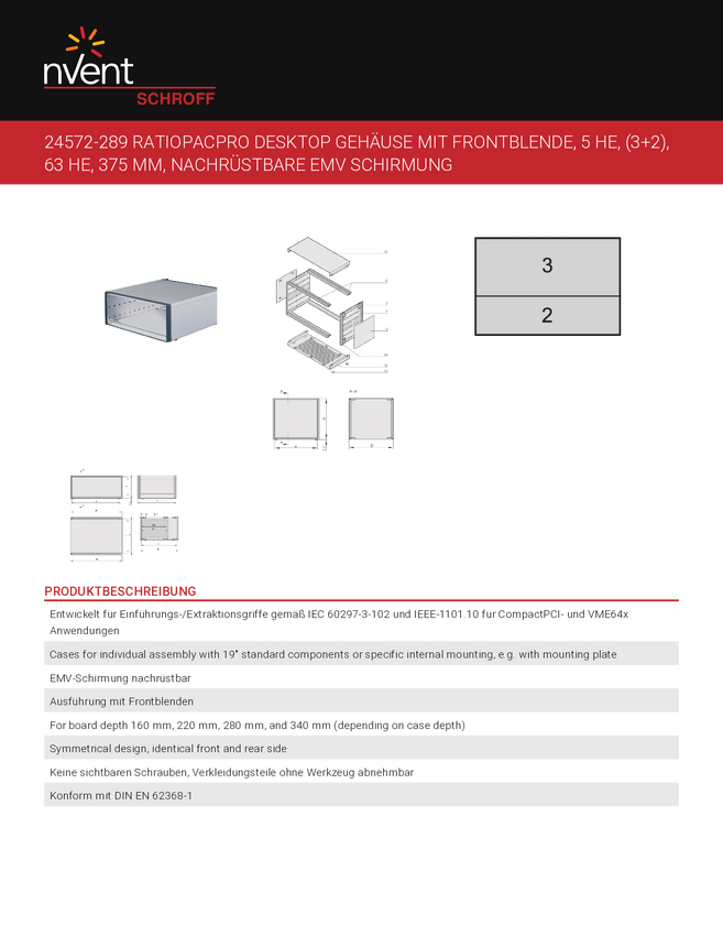 nVent SCHROFF 24572520 Obudowa biurkowa 88.1 x 255.5 1 szt.
