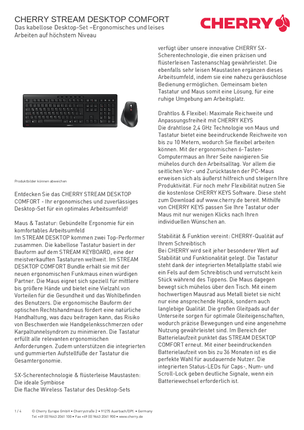 Zestaw biurkowy Cherry Stream Comfort Wireless