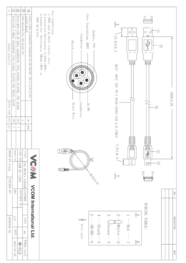 Kabel USB zakończony wtykami USB: A4 męski mini-B5 męski, 1.8mb