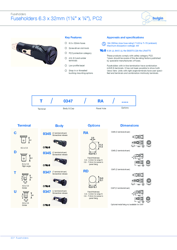 Fuse Holder 12A 250V Pin Through Hole Bulk