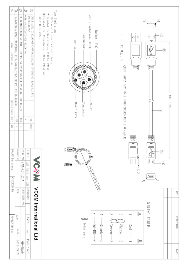 Kabel zakończony wtykami USB: A4 męski Micro-B5 męski, 1.8mb