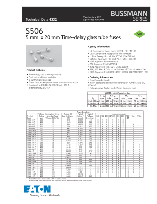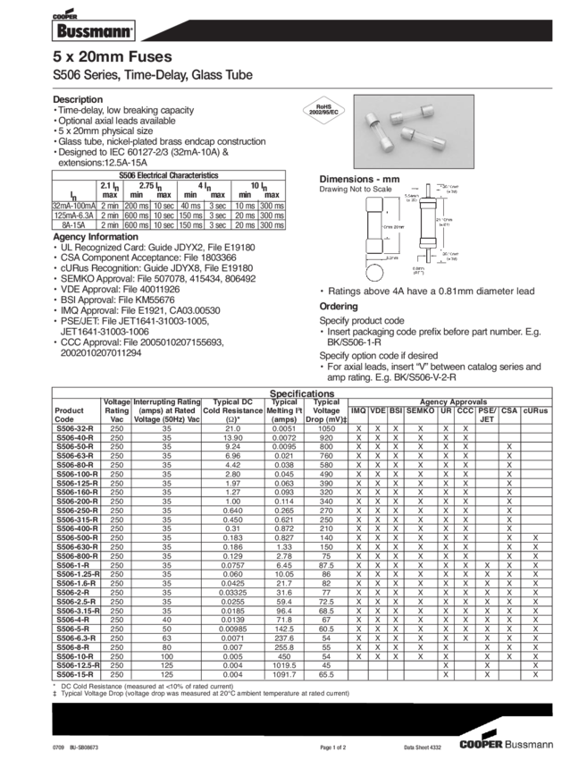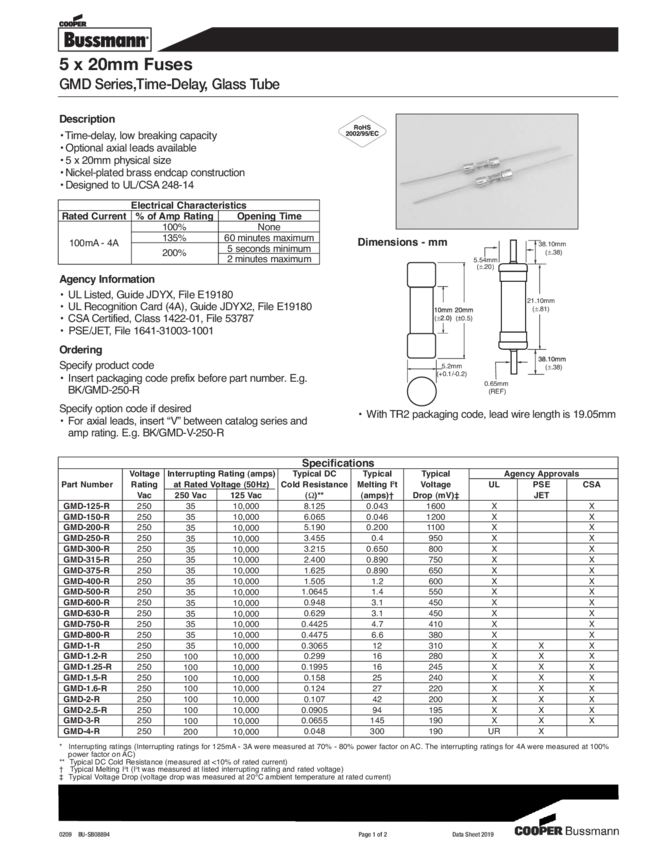 Fuse Miniature 0.25A 250V Slow Blow 2-Pin Cartridge Holder Carton