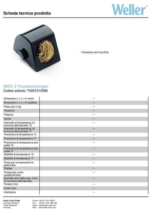 Gąbka do czyszczania grotów lutowniczych Weller WDC 2 Dry Cleaner T0051512599