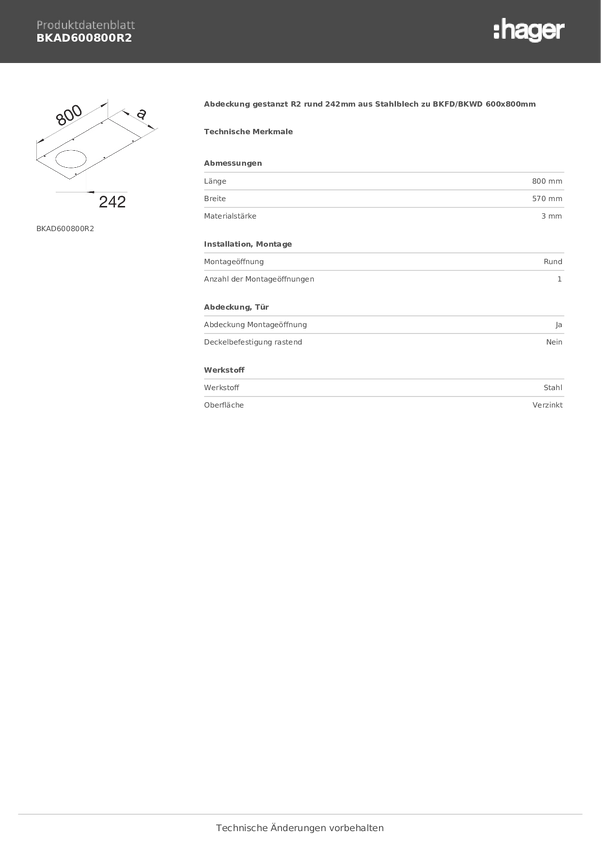 Pokrywa Hager Tehalit BKAD600800R2, 1 szt.