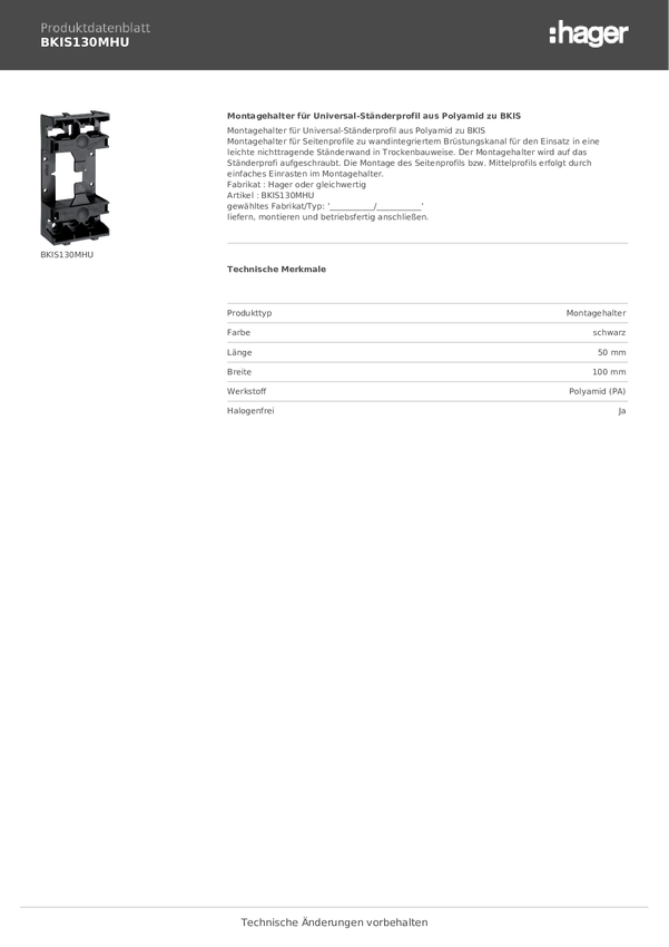 Uchwyt montażowy Hager BKIS130MHU 1 szt.
