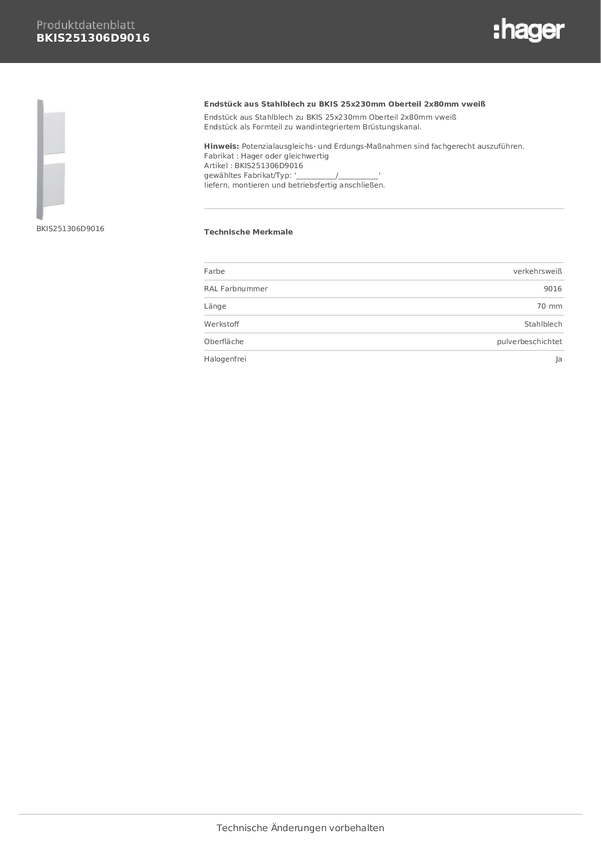 Element końcowy Hager BKIS251306D9016 1 szt.