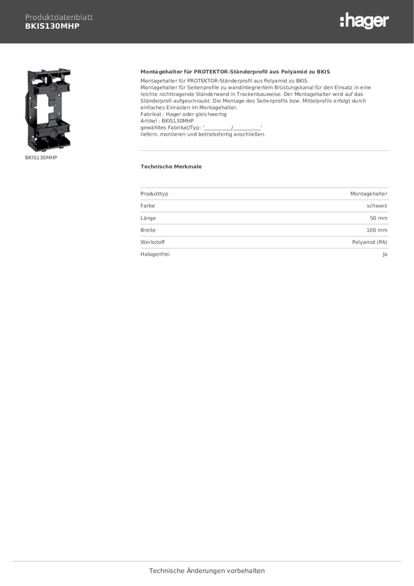 Uchwyt montażowy Hager BKIS130MHP 1 szt.