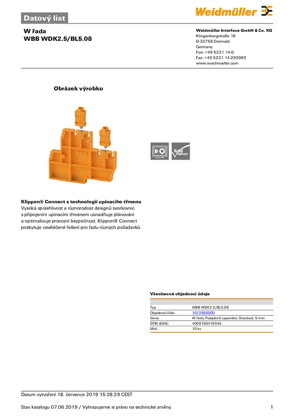 Element mocujący Weidmüller WBB WDK2.5/BL5.08 1072660000, 10 szt.