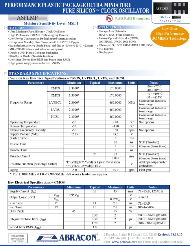 Silicon Oscillator 2.5V 15pF 4-Pin QFN EP Tube