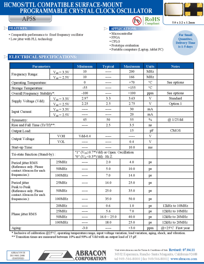 Programmable Crystal Oscillator 3.3V 15pF 4-Pin SMD Bulk